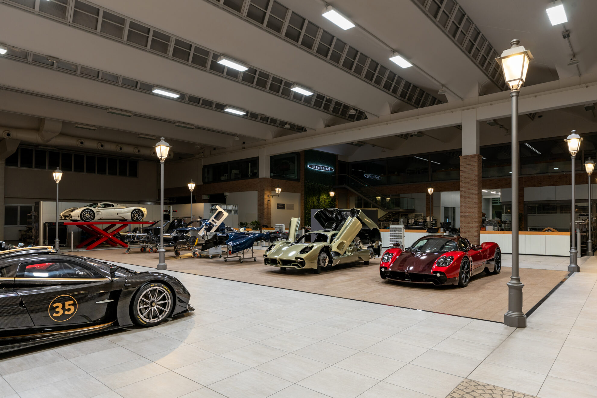 Si potrà visitare anche l’Atelier Pagani, il luogo in cui gli artigiani mettono in contatto intelletto e manualità per creare Hypercar uniche, realizzate a mano. Simile a un laboratorio rinascimentale, integra le tecnologie più avanzate del settore. L’ispirazione proviene dalla tipica ‘piazza’ italiana, il centro cittadino dominato dalla torre dell’orologio, con archi, lampioni dalle linee classiche e spazi verdi. Un luogo in cui tradizione e avanguardia coesistono in armonia.
